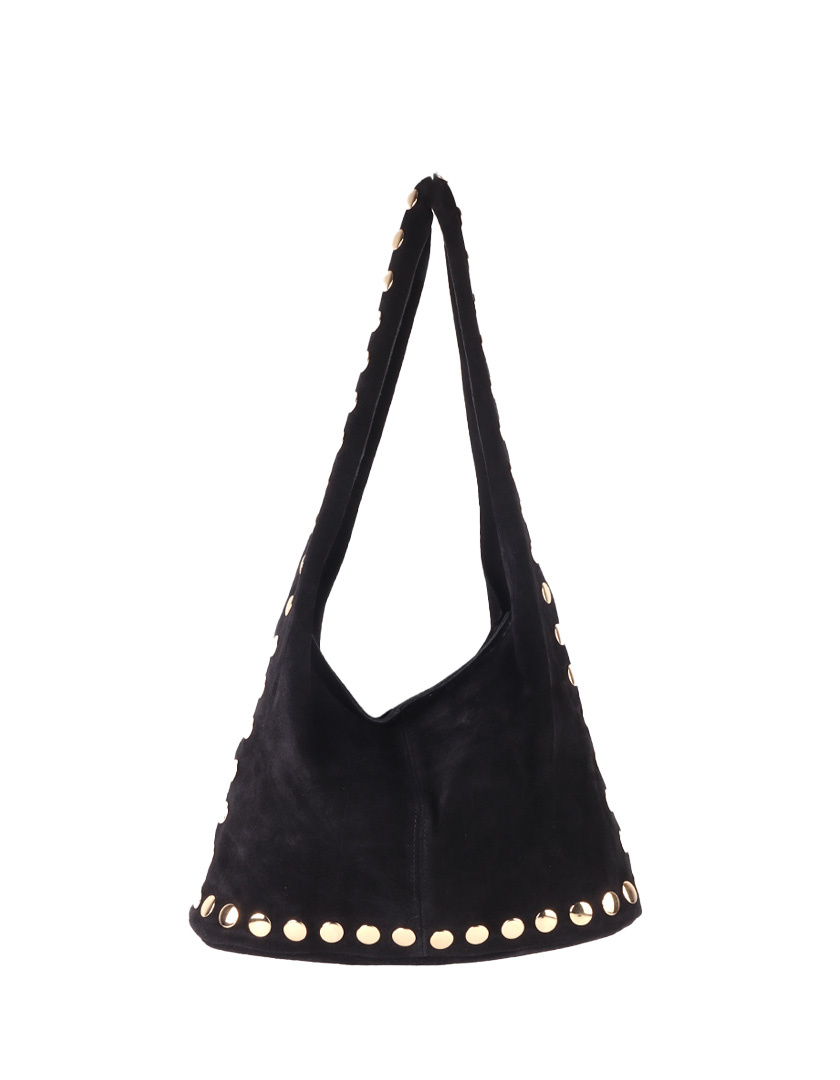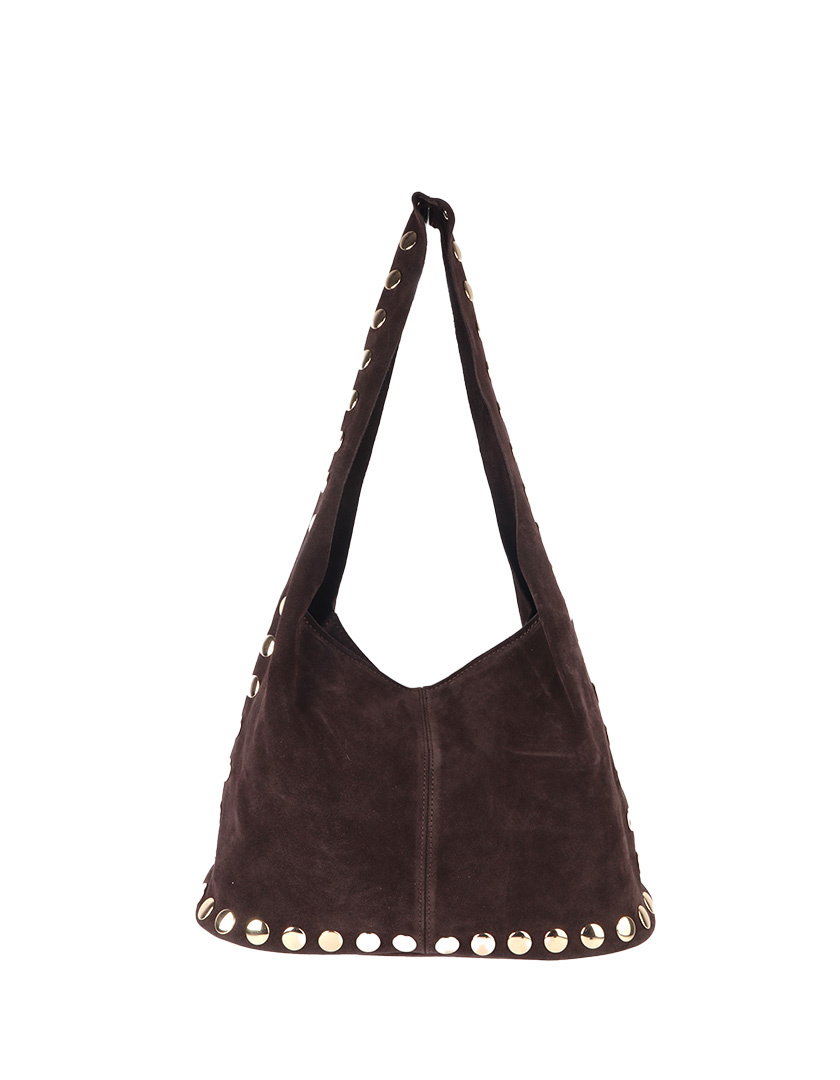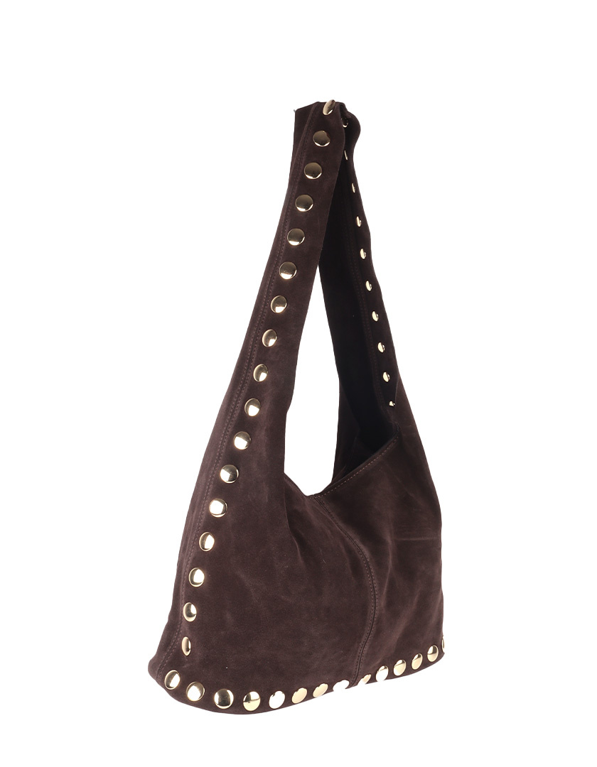 • Trendy suede hobo bag with gold studs. Soft, spacious, and elegant with an edgy touch. Perfect for daily wear. Available in multiple stylish colors.