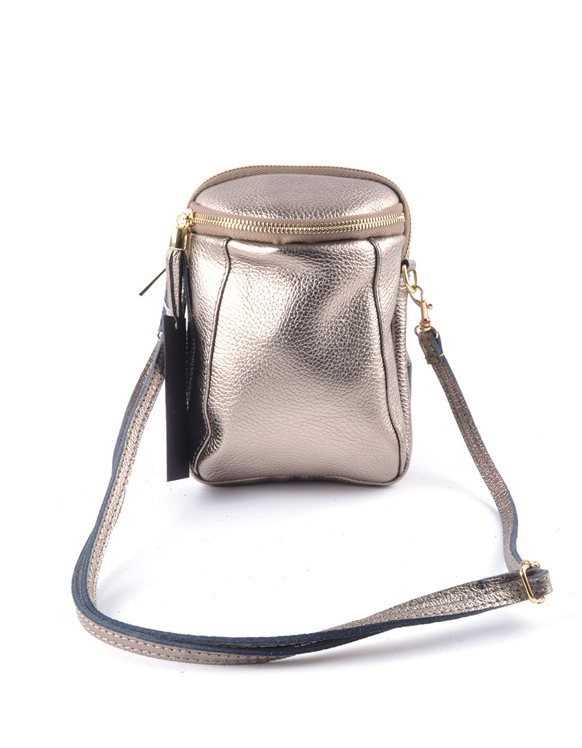• Leather metallicshoulder bag with 2 compartments with a zipper.
