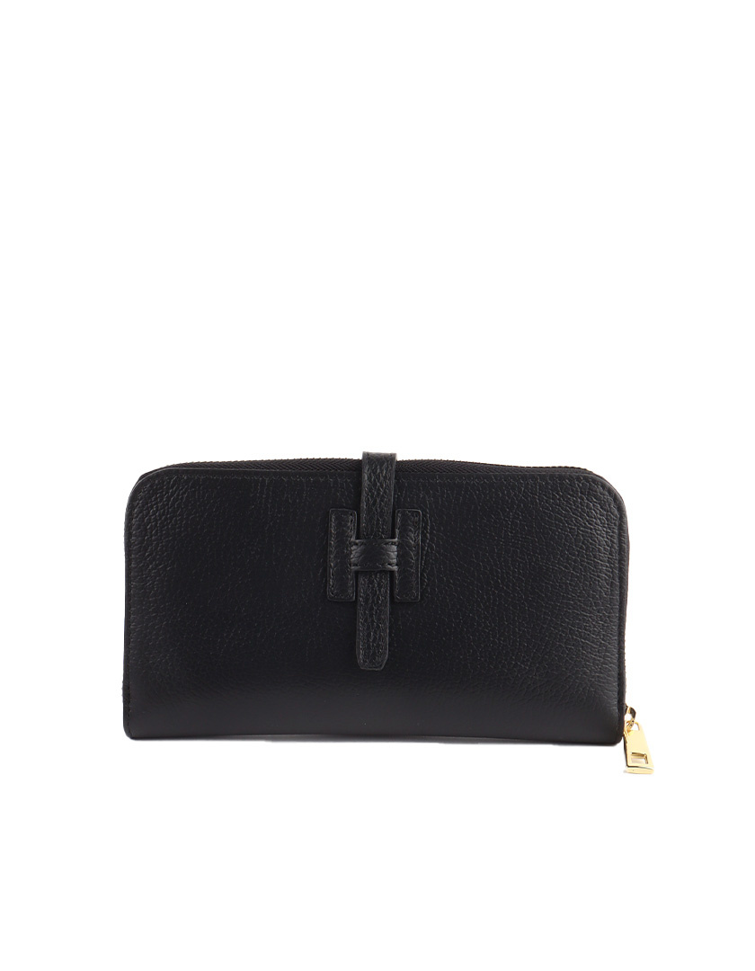 Rugged leather wallet featuring our signature H-closure at the center. Includes a front pocket and a lined main compartment secured with a zipper. Inside, multiple slots keep your essentials organized.