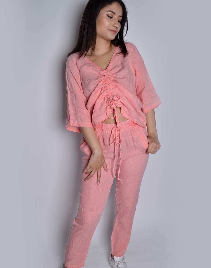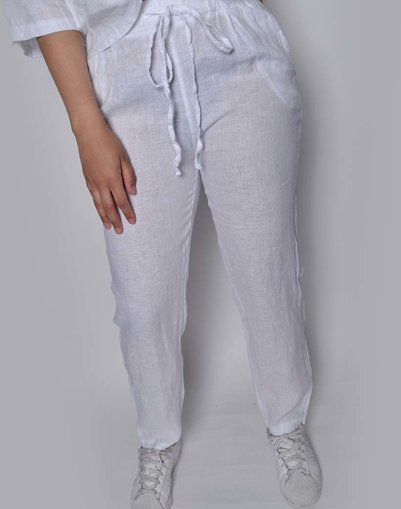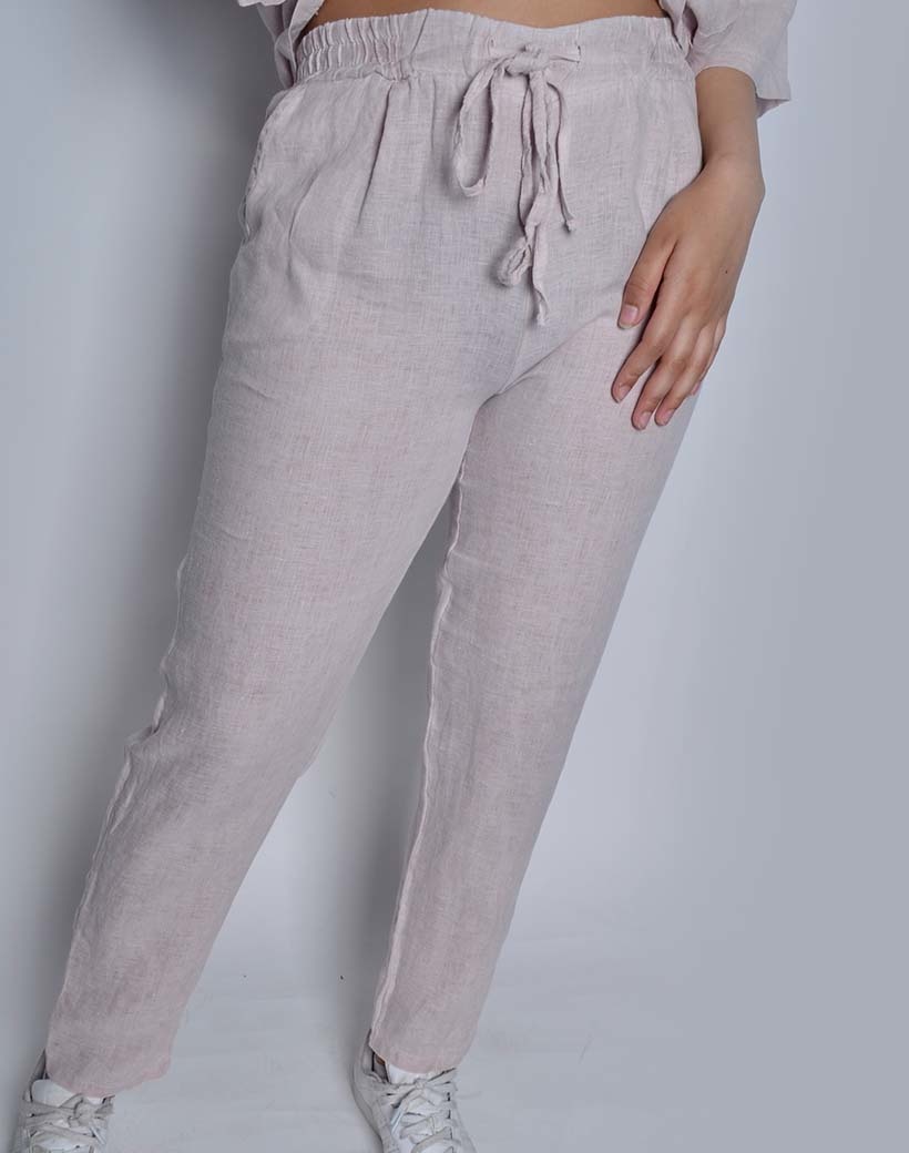 • Linen pants with a drawstring and side pockets Combine the pants with our matching top! See related products. Can be worn as XS, S and M.