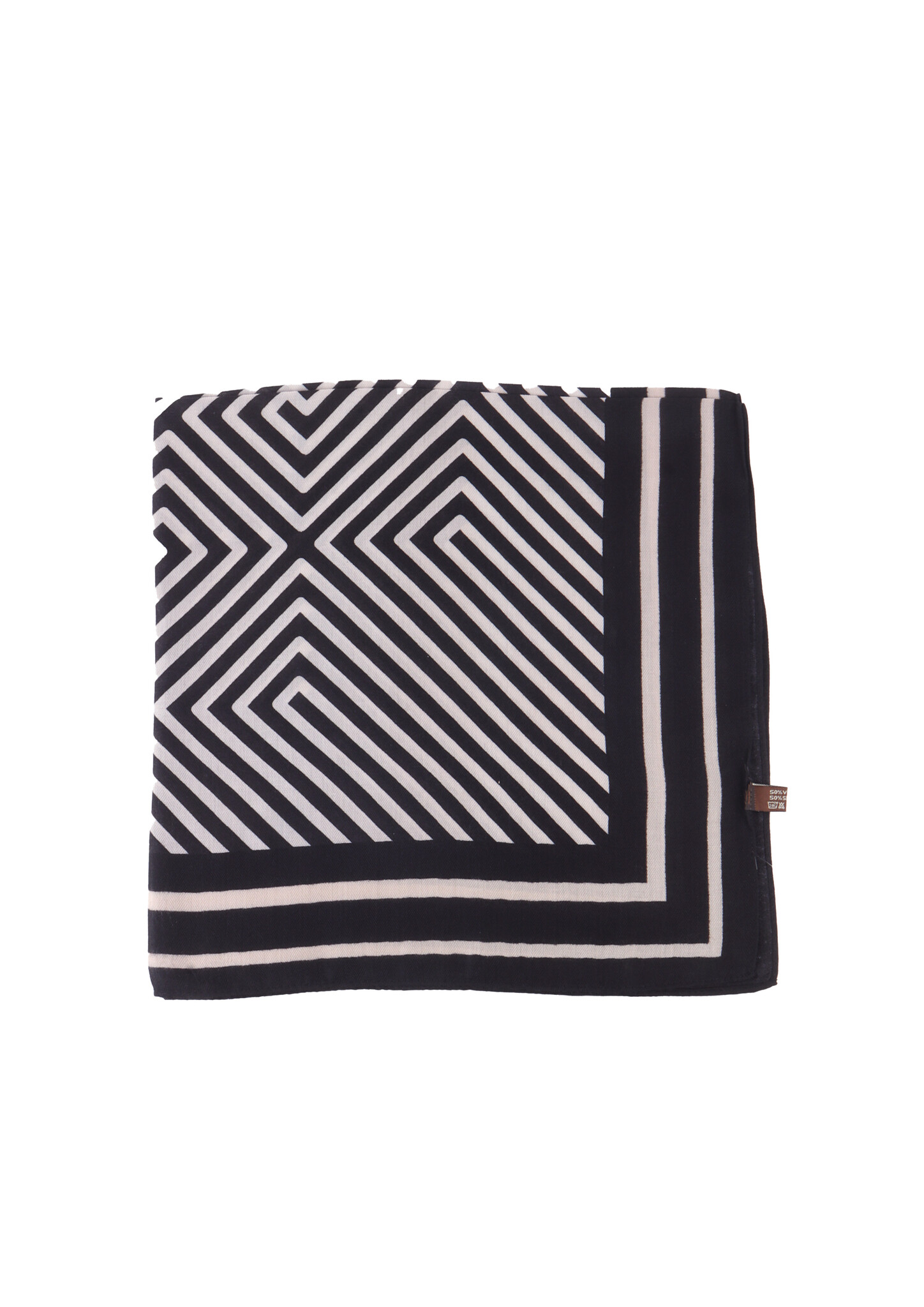 Trendy scarf with a modern striped pattern in brown and yellow tones. Made from a soft, lightweight fabric that feels comfortable on the skin. Perfect for adding a stylish and contemporary touch to any outfit.