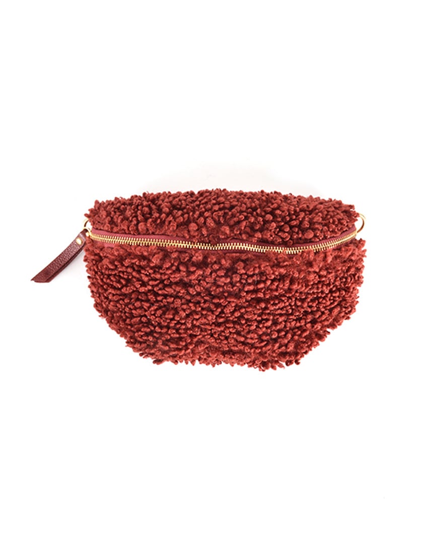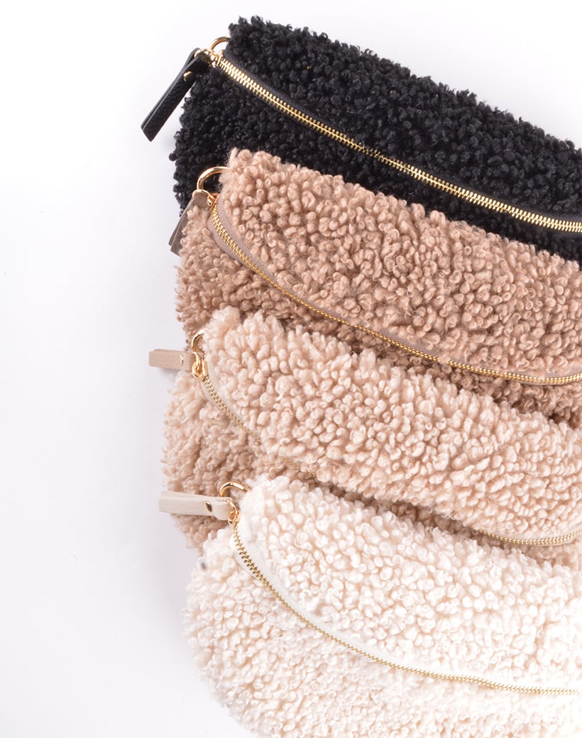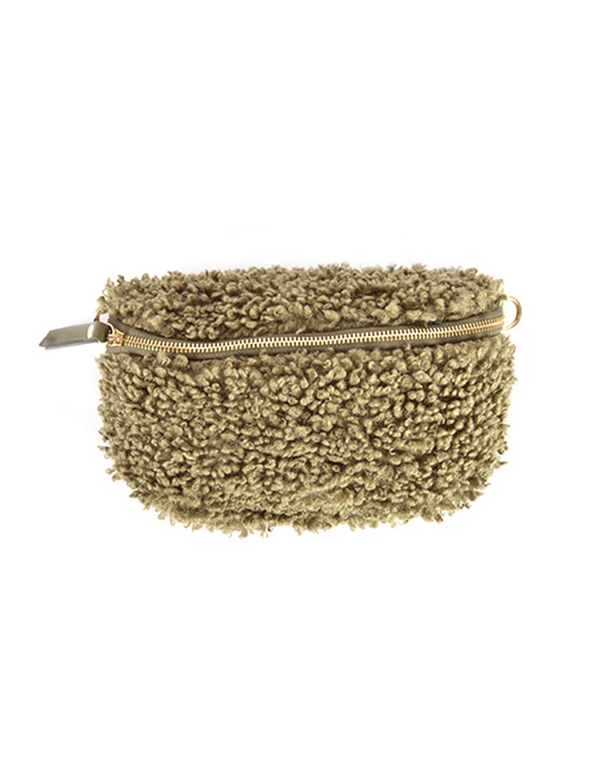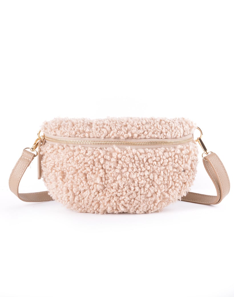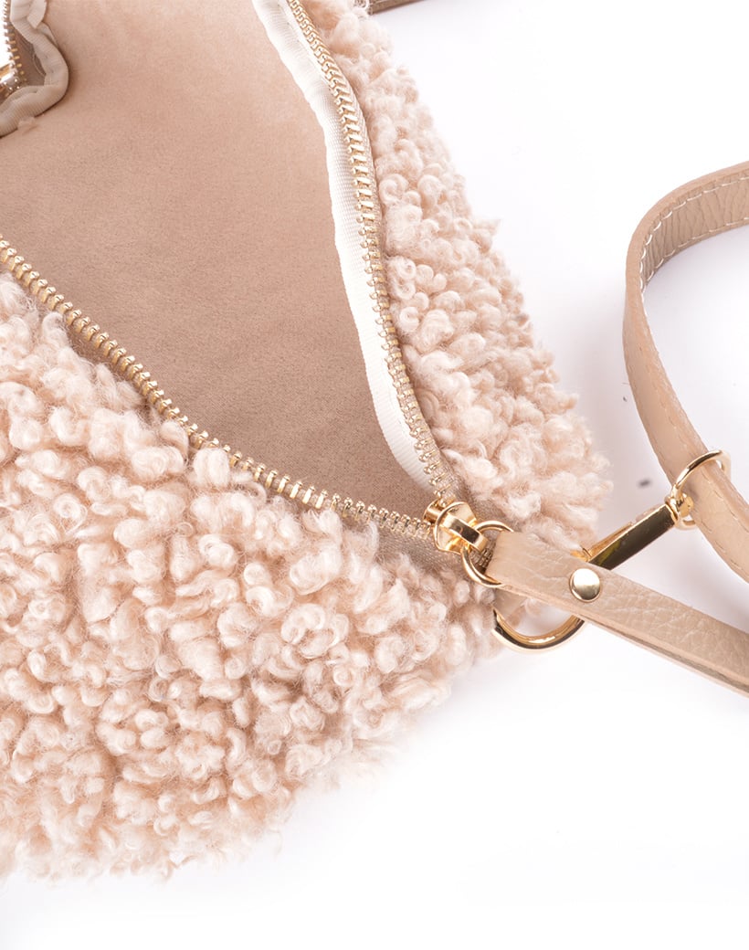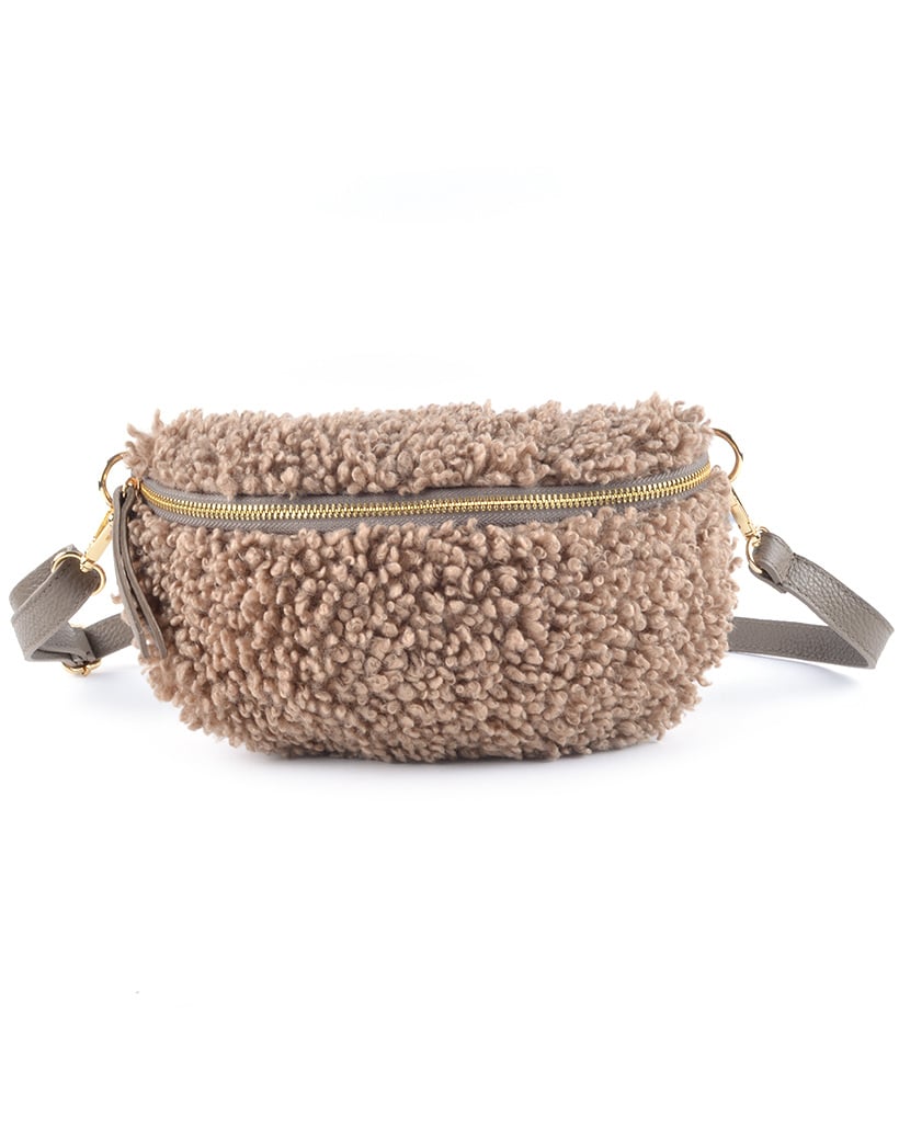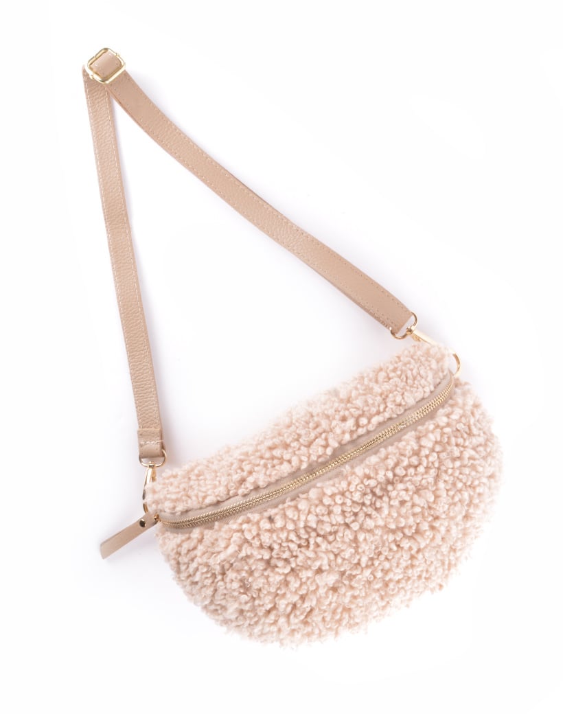 • Teddybelt bag with a zipper and a leather shoulder strap.